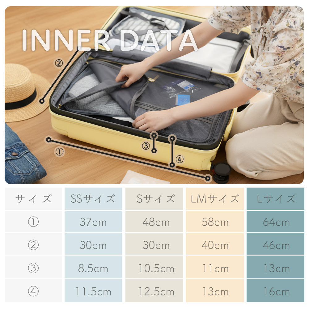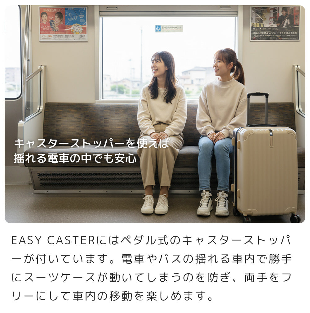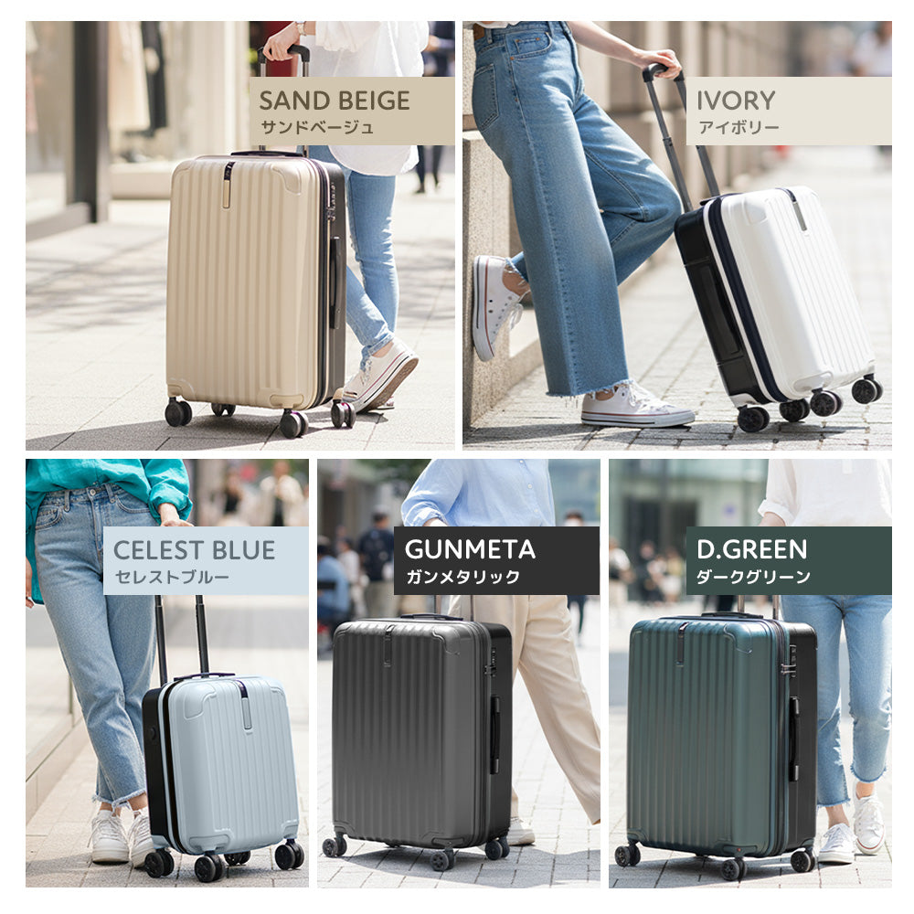 静音8輪キャスター、身長や使うシーンに困らない多段式キャリーバーなど、使いやすさにこだわったスーツケースです。