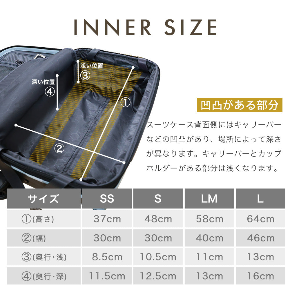 | ■総外寸はキャスターやハンドルなどのパーツを含めた寸法です。 ■機内持ち込みできる荷物の重さは航空会社や路線によって異なりますが、一般的には【10kg以内(本体重量含む)】です。 ■冬場は商品開封時に静電気が発生しやすくなっておりますのでご注意ください。 ■使用されているスマートフォン、モニターによっては商品の多少色味が違って見える場合がございます。予めご了承ください。 ■当店商品は発送前に検品をしております。開梱した形跡があっても中古品や返品商品というわけではありませんのでご安心ください。 ■商品の仕様、デザインは改良のため予告なく変更することがあります。 ■スーツケース内のメンテナンスファスナーは通常お荷物などに引っ掛からないよう裏向きになっており、持ち手もついておりません。お荷物はメンテナンスファスナーを開けずにお詰めください。 |