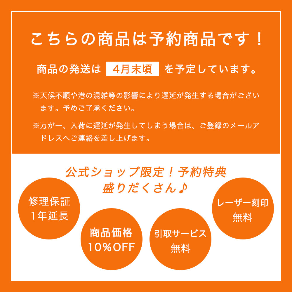 ※万が一入荷に遅延が発生してしまう場合は、ご登録のメールアドレスへ事前にご連絡を差し上げます。