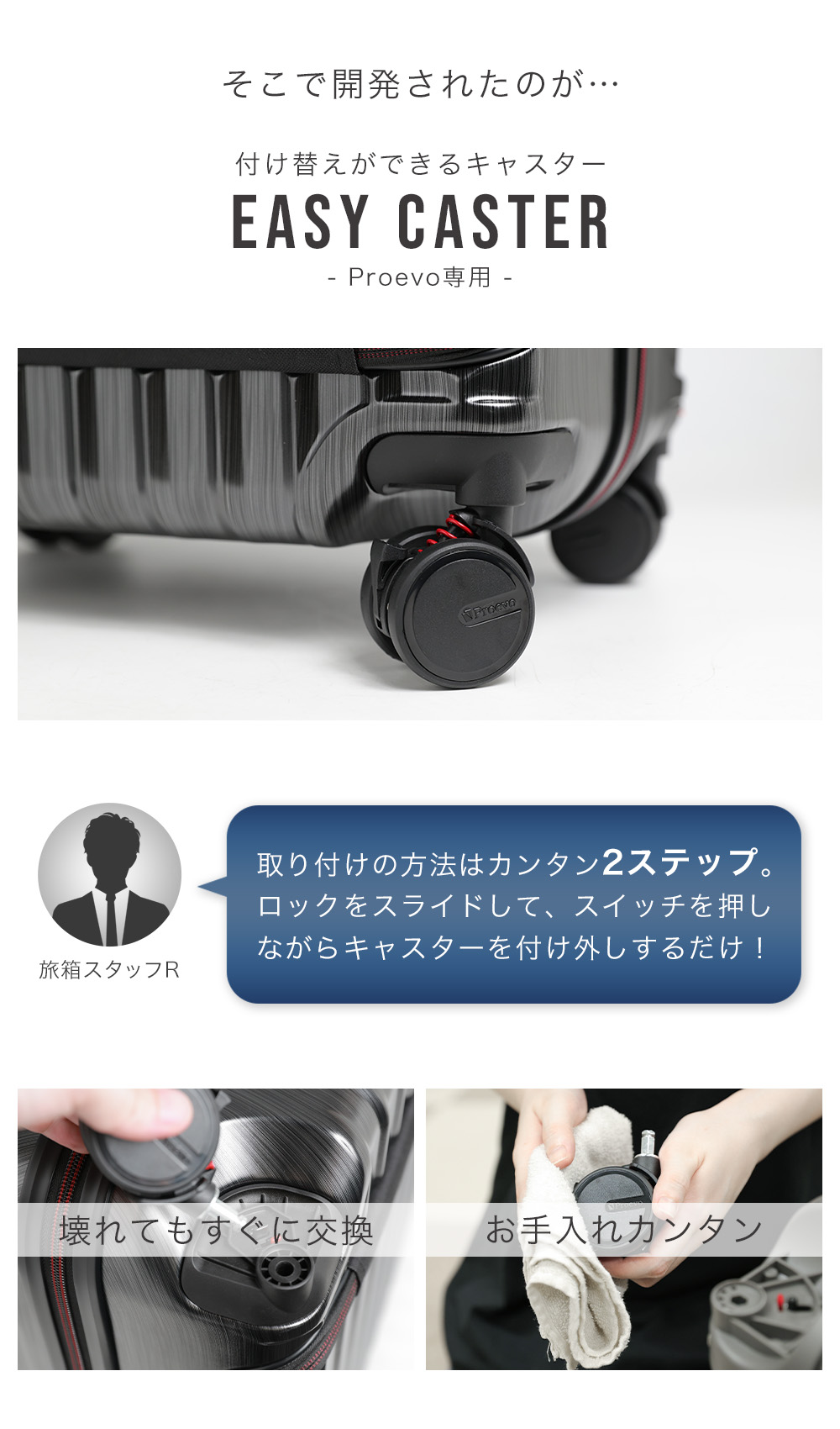 静音性・操作性・安定性が向上したEASY CASTERが標準搭載されました。