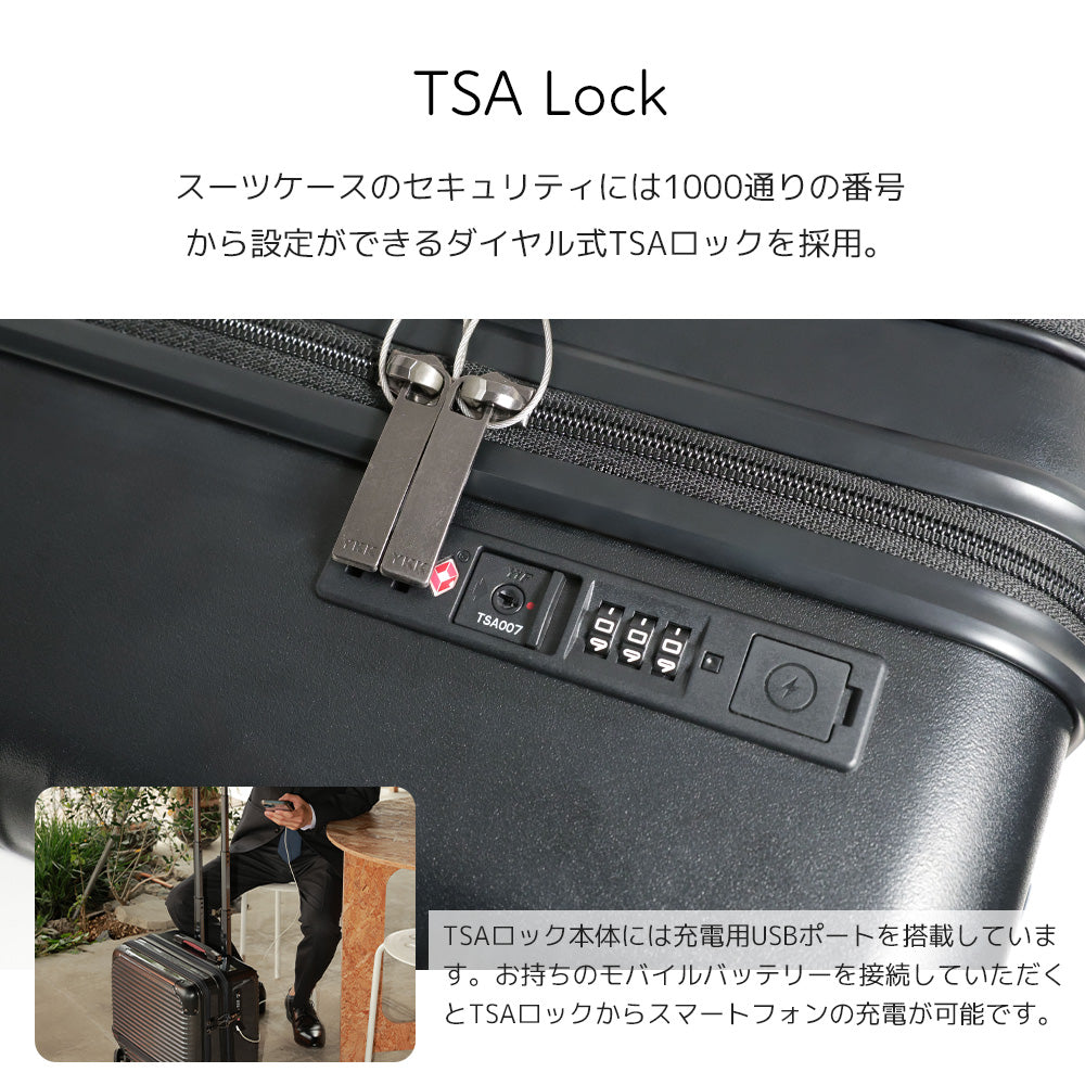 【Security】セキュリティの要である鍵部分にはダイヤル式TSAロックを搭載。ダイヤル式なので旅先で鍵を失くしてしまう心配がありません。TSAロックなのでアメリカなどへの海外旅行の際も鍵を破壊されるリスクが低くなります。